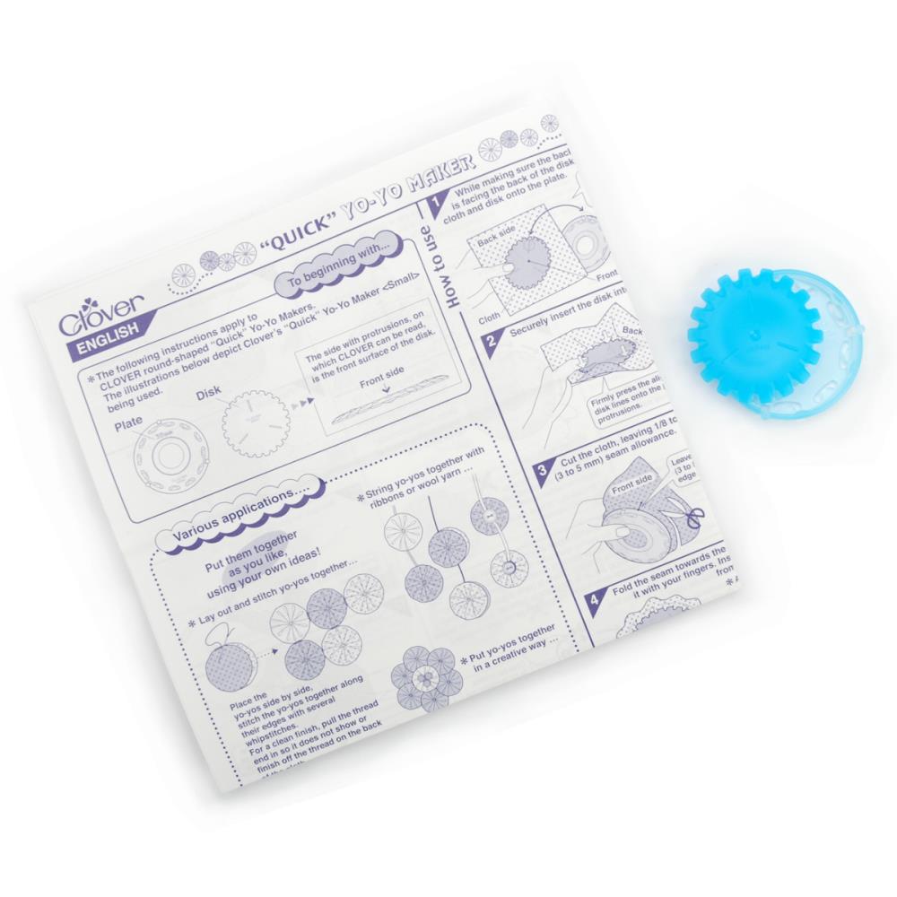 CLOVER-Quick Yo Yo Maker: Extra Small (turquoise). A quick and easy way to make nicely shaped yo-yo's in minutes! These yo-yo templates are your perfect tool for embellishing paper craft projects, home decor and ready-to-wear garments. Easy step-by-step instructions are included. Finished size: approximately 3/4in. Imported.