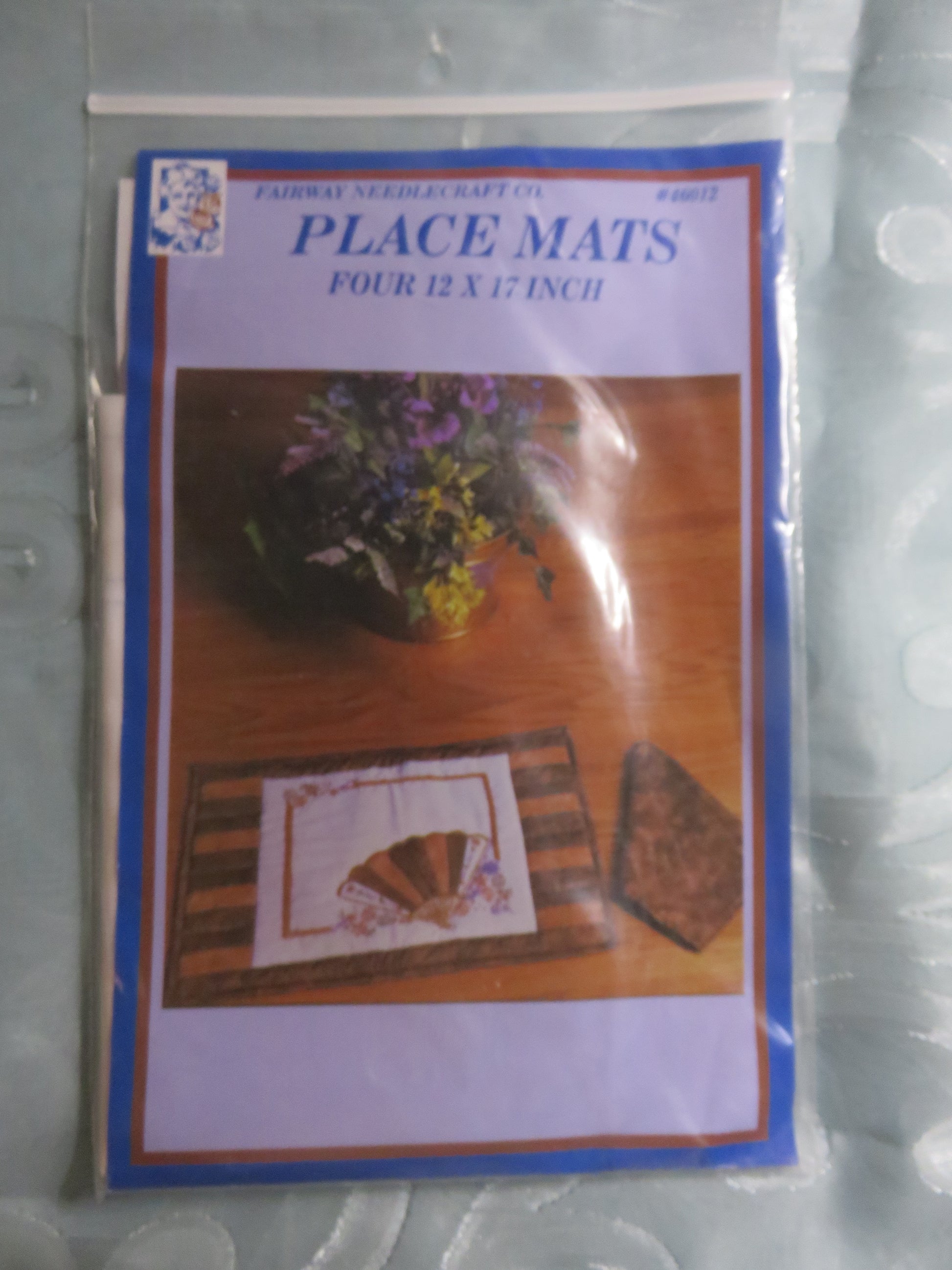 Place Mats. Four 12 x 17 inch. Pattern # 46012. Pattern includes instructions for making the placemats as well as the embroidery block. Floss, batting, fabric not included.
