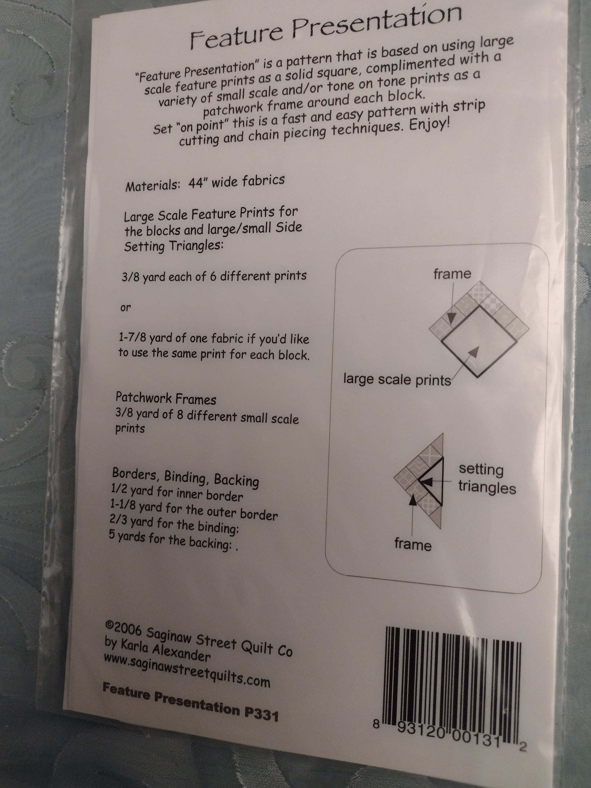 Feature Presentation Finished size 64" x 81" P331. By Karla Alexander Saginaw Street Quilt Company. Pattern only.