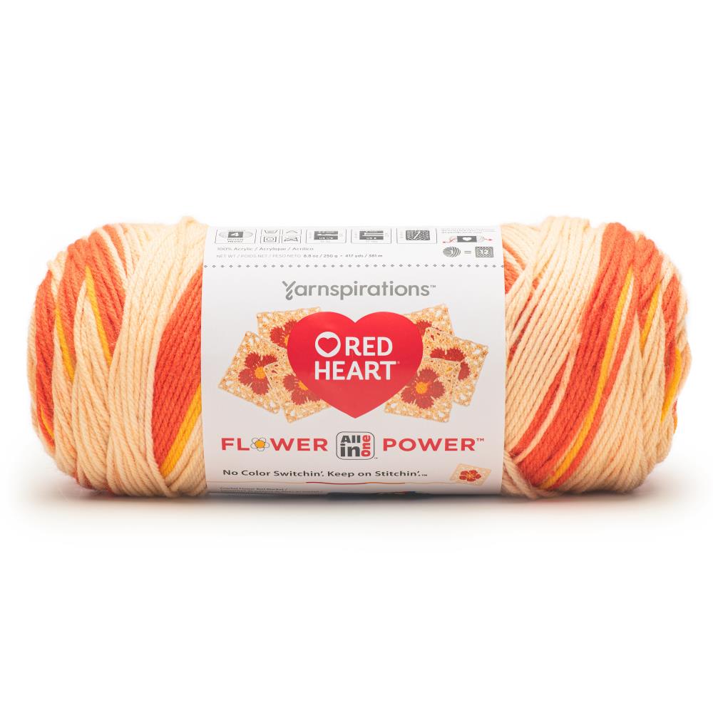 All-in-One Flower Power yarn, the ultimate solution for crocheting continuous floral motifs with ease! The repeating 3-color stripe lets you seamlessly create up to 12 motifs from just one pull skein. Whether you're crafting fashion pieces, accessories, or home decor, All in One Flower Power offers the perfect balance of strength and softness. Weight Category: #4 Medium. Content: 100% Acrylic. Put up: 8.8oz/250g, 417yd/381m. Gauge: 17stX23r=4in/10cm on size US8/5mm knitting needles. Suggested crochet hook size: I9/5.5mm. Dyelotted: we try but are not always able to match dyelots. Available in a variety of color combinations. Each sold separately. Machine Wash Cold, Delicate/Gentle Cycle, Do Not Bleach, Tumble Dry Medium Heat, Delicate/Gentle Cycle, Do Not Iron, Do Not Dry Clean. Imported. Color: Rosy Disposition