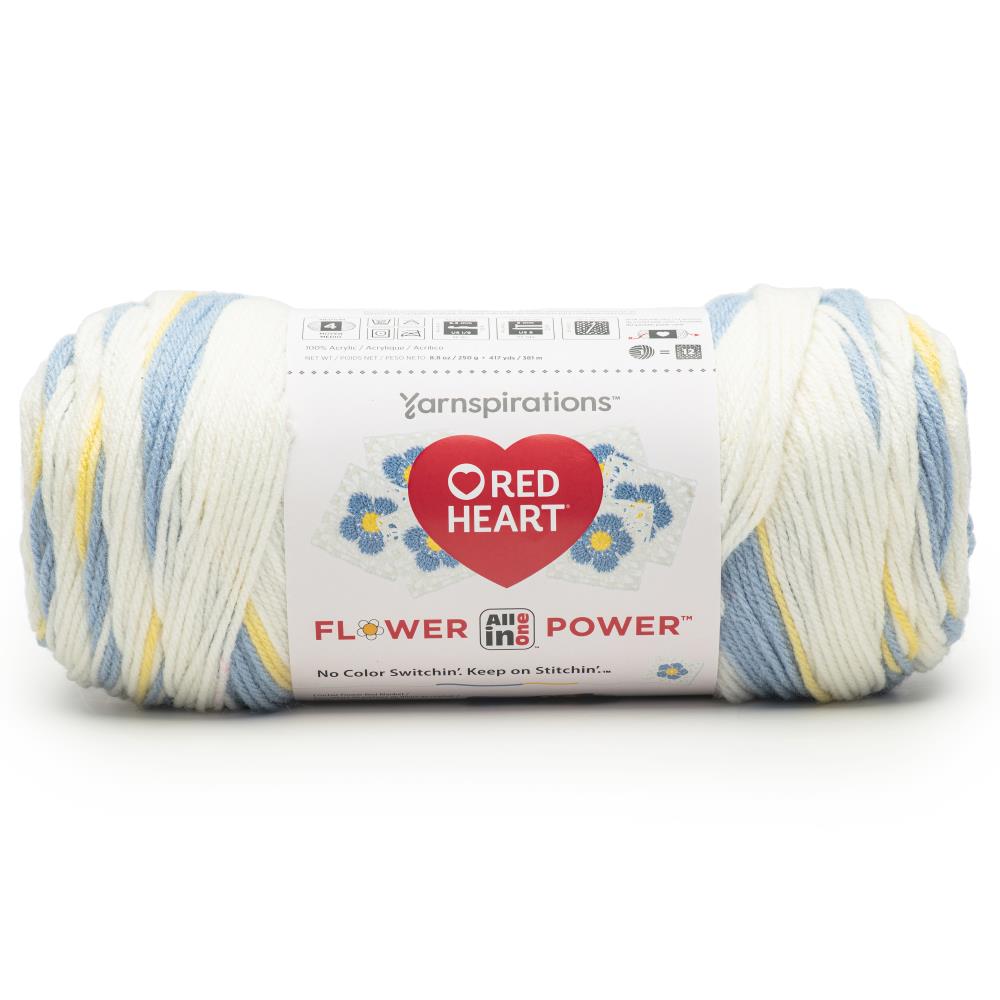 All-in-One Flower Power yarn, the ultimate solution for crocheting continuous floral motifs with ease! The repeating 3-color stripe lets you seamlessly create up to 12 motifs from just one pull skein. Whether you're crafting fashion pieces, accessories, or home decor, All in One Flower Power offers the perfect balance of strength and softness. Weight Category: #4 Medium. Content: 100% Acrylic. Put up: 8.8oz/250g, 417yd/381m. Gauge: 17stX23r=4in/10cm on size US8/5mm knitting needles. Suggested crochet hook size: I9/5.5mm. Dyelotted: we try but are not always able to match dyelots. Available in a variety of color combinations. Each sold separately. Machine Wash Cold, Delicate/Gentle Cycle, Do Not Bleach, Tumble Dry Medium Heat, Delicate/Gentle Cycle, Do Not Iron, Do Not Dry Clean. Imported. Color: Forget Me Not