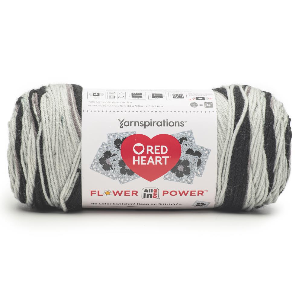 All-in-One Flower Power yarn, the ultimate solution for crocheting continuous floral motifs with ease! The repeating 3-color stripe lets you seamlessly create up to 12 motifs from just one pull skein. Whether you're crafting fashion pieces, accessories, or home decor, All in One Flower Power offers the perfect balance of strength and softness. Weight Category: #4 Medium. Content: 100% Acrylic. Put up: 8.8oz/250g, 417yd/381m. Gauge: 17stX23r=4in/10cm on size US8/5mm knitting needles. Suggested crochet hook size: I9/5.5mm. Dyelotted: we try but are not always able to match dyelots. Available in a variety of color combinations. Each sold separately. Machine Wash Cold, Delicate/Gentle Cycle, Do Not Bleach, Tumble Dry Medium Heat, Delicate/Gentle Cycle, Do Not Iron, Do Not Dry Clean. Imported. Color: Black Dahlia