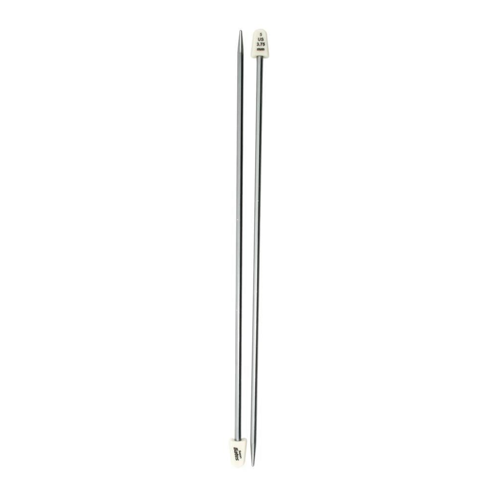 This pair of needles are heat-treated for strength and durability and are polished for a smooth finish. Each needle is color-coded so you can find the size you need at a glance. The knobs feature a no roll design and US and metric sizes are clearly printed on the knob. This 1x12 inch package contains one pair of 10 inch size US 5/3.75mm needles. WARNING: Choking Hazard. Not suitable for children under 3 years. WARNING: May contain items with sharp edges. Handle with care. Imported.